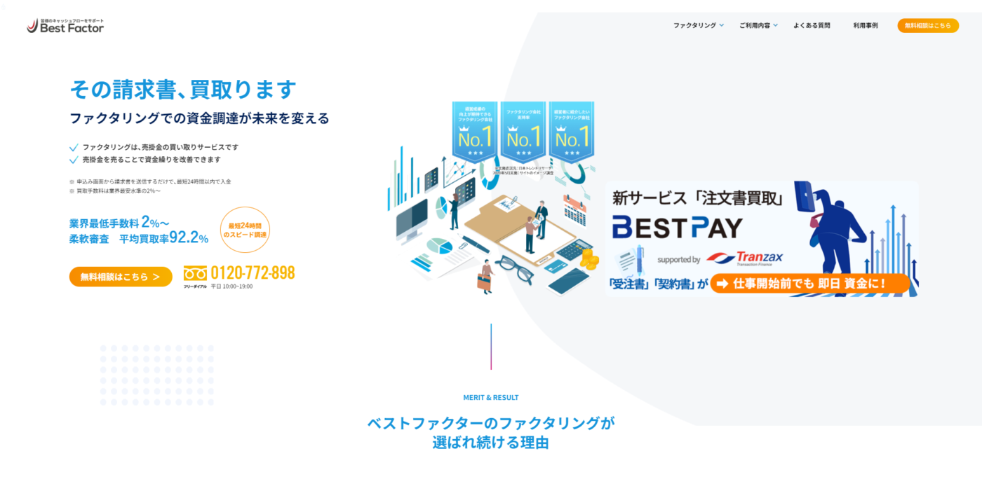 ベストファクターは、高い審査通過率と柔軟な対応力で定評のあるファクタリングサービスです。